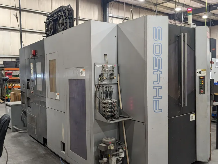 TOYODA FH450S CNC Horizontal Machining Center, 2006 model. Features 23.62" travel on X/Y/Z axes, 30 hp power, 60-tool ATC, 40 taper, and 17.7" pallets. Equipped with Fanuc 31i Model A, 1 degree table, high-pressure coolant (1500 psi), and hydraulic clamping.