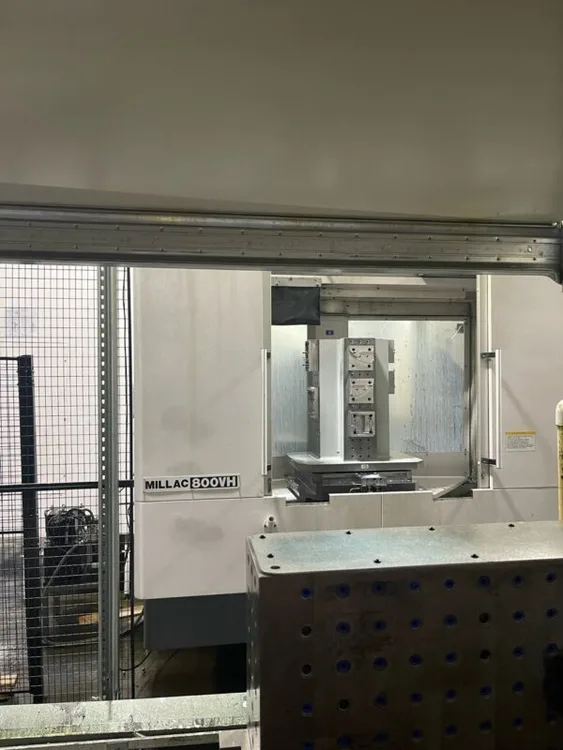 (2) OKUMA MILLAC 800VH, 2008 used universal machining center. Features 5-axis control, 30.0 power, 10000 RPM. X, Y, Z: 40.16; ATC: 80. Taper: 50. Table: 31.49x31.49. Ideal for versatile, precise machining tasks.