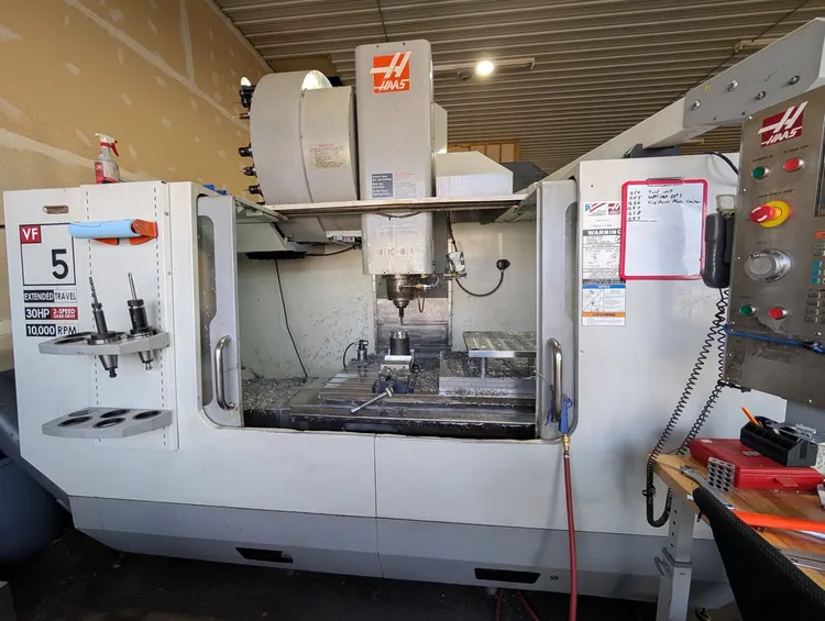 Available: 2007 HAAS VF-5/50XT CNC Vertical Machining Center, featuring extended travel, 60" x 26" x 25" capacity, 30 HP power, 10,000 RPM, 4th Axis Drive, and a 30-tool Automatic Tool Changer with 50 Taper. Suitable for precision tasks.