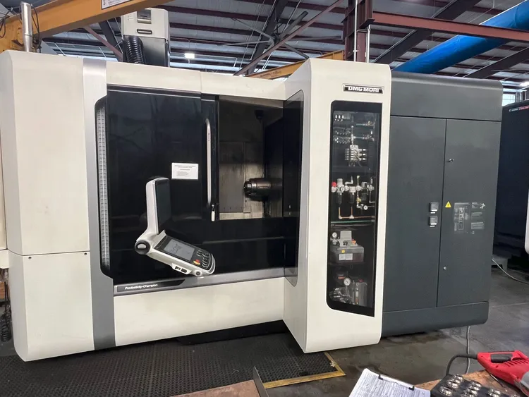 Used DMG MORI NHX 5000 CNC Horizontal Machining Center, 2016. Features 3-axis travel (X: 28.74", Y: 28.74", Z: 31.5"), 20.1 hp, 15,000 RPM spindle, 60-tool ATC, and 19.69" pallets. Ideal for precision and efficiency.